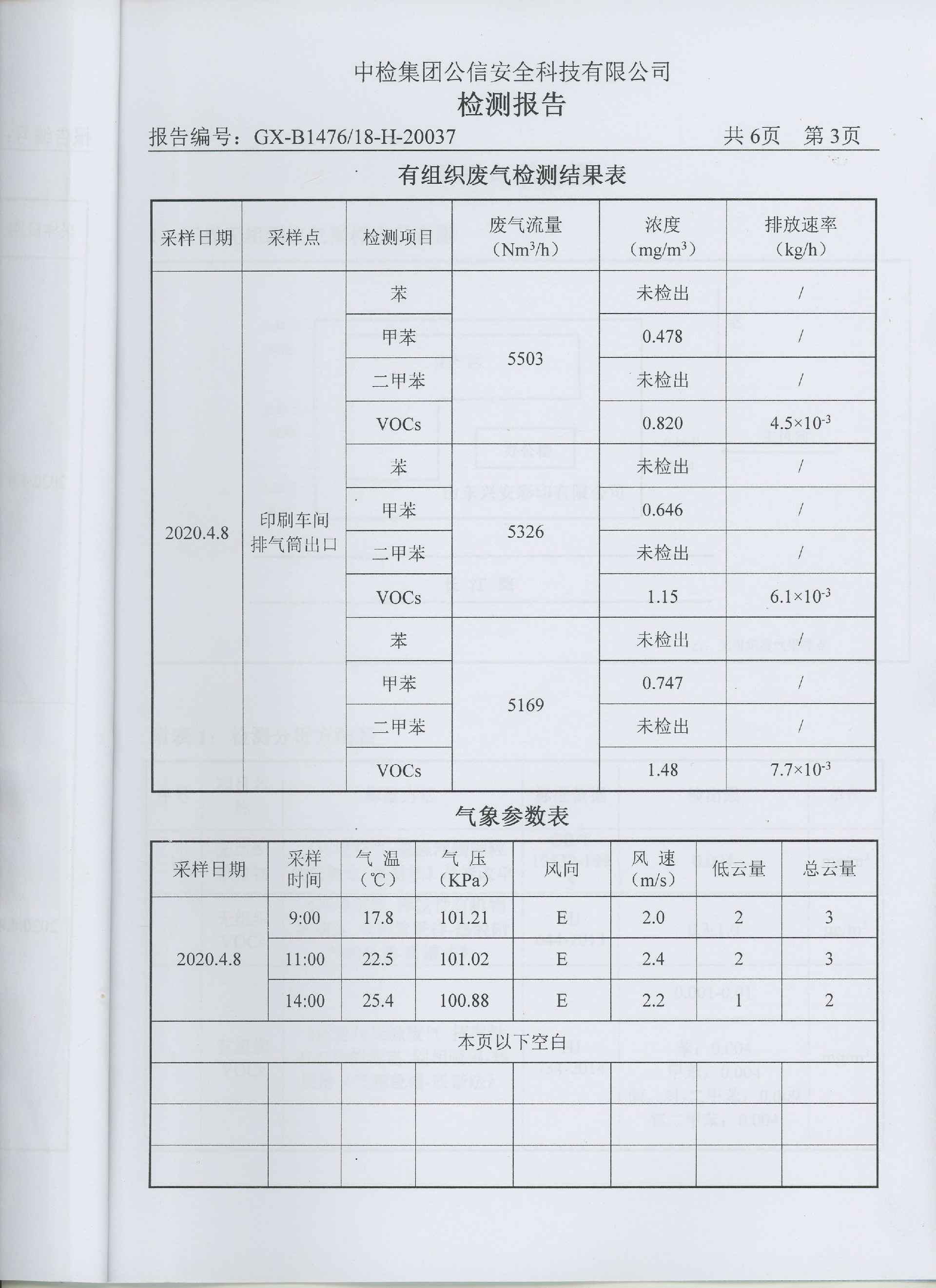 扬州梓煜健康保健教育有限公司一直把环保治理工作作为企业发展重中之重,根据市区生态环境保护局要求于2017年8月份率先上了Ⅴ0Cs环保处理设备,印刷车间废气通过收集风管,进入过滤器,将空气颗粒物过滤掉,经过光催化氧化分解剩余有机废气,同时由离子氧化进一步处理残余废气,将有机废气氧化成二氧化碳和水,通过烟囱引高排。2018年2月经有关环保专家验收合格,有机挥发物排放达标。每季度都委托枣庄公信安全科技公司对公司有机挥发物废气各项指标进行检测,下图为最新监测数据: